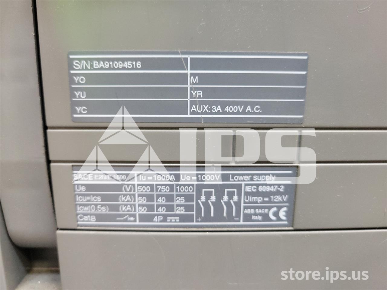 1600A ABB SACE EMAX DC E2N/E FOUR POLE EO/BI 125VDC CONTROL, PR123/DC LSIG, 1600A CT, 1600A RP, BELL ALARM WITH REMOTE RESET