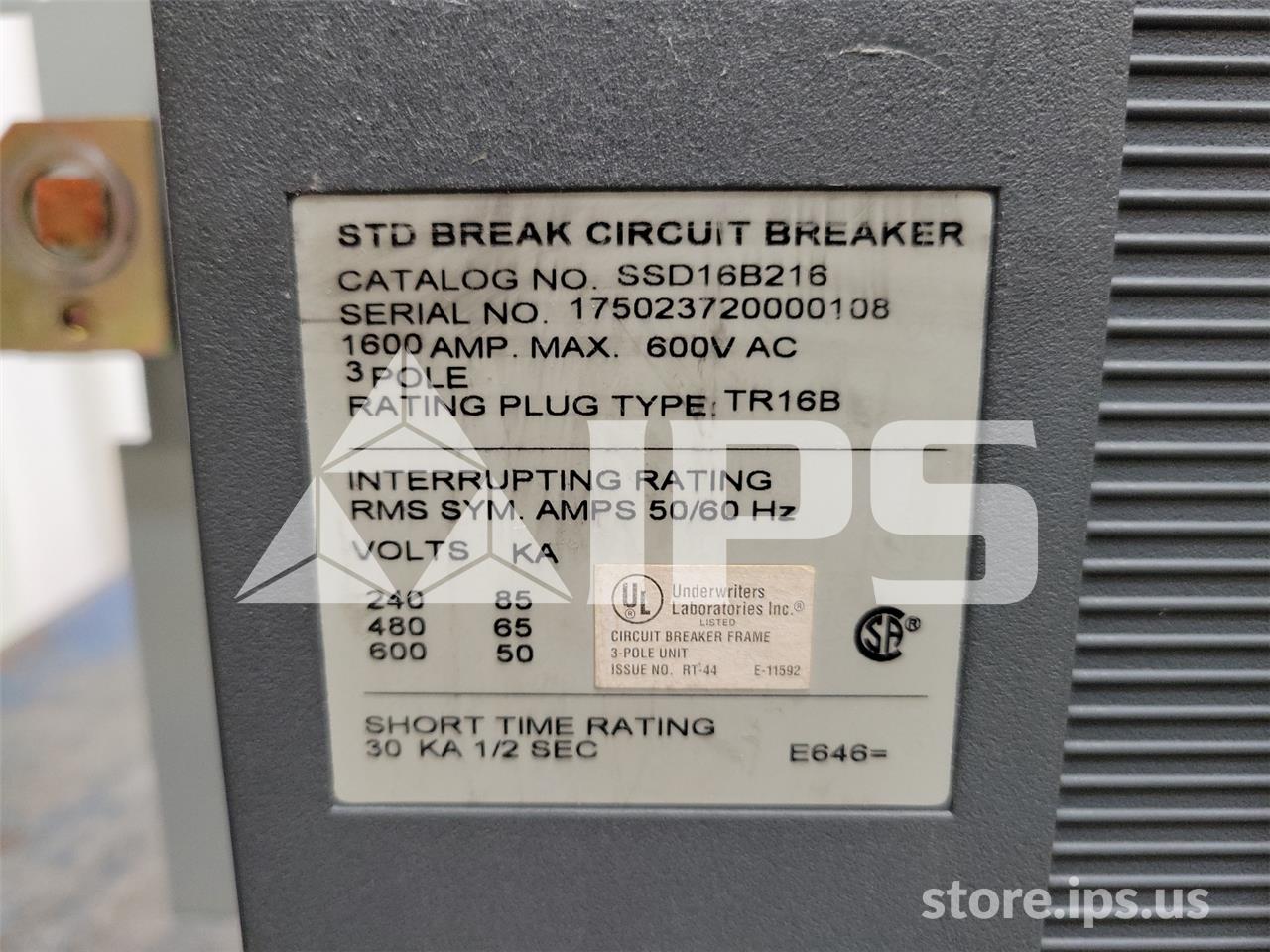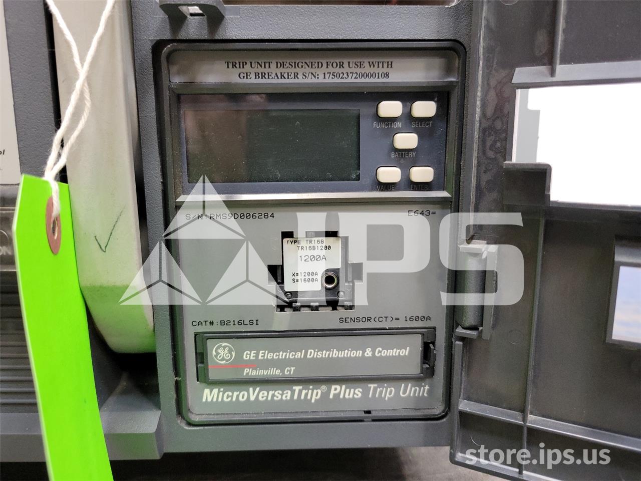 1600A GE SSD POWER BREAK II EO/DO (SSD16) 120VAC CONTROL, 48VDC SHUNT TRIP, MVT PLUS LSI, 1600A CT, 1200A RP