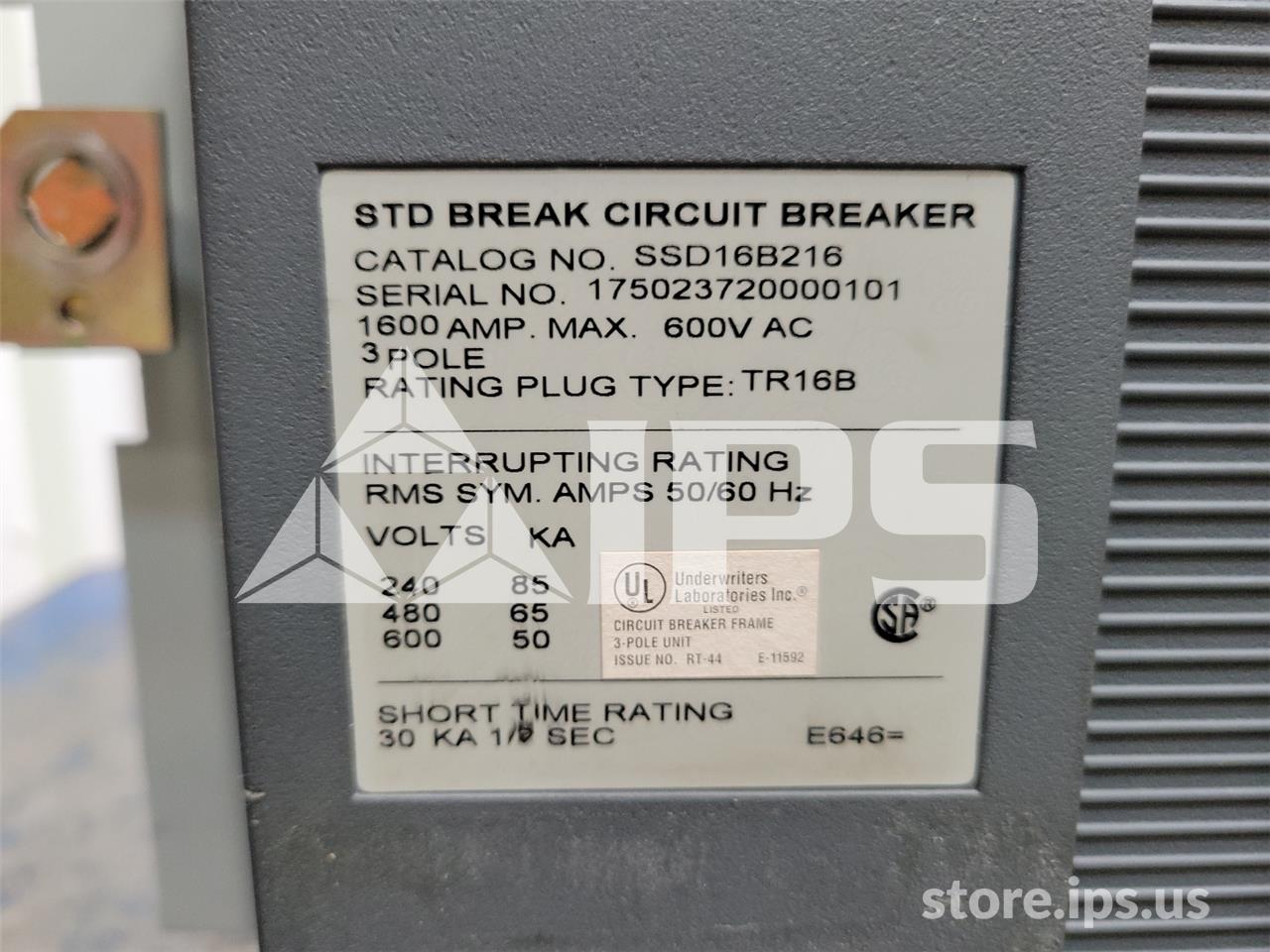 1600A GE SSD POWER BREAK II EO/DO (SSD16) 120VAC CONTROL, 48VDC SHUNT TRIP, MVT PLUS LSI, 1600A CT, 1200A RP