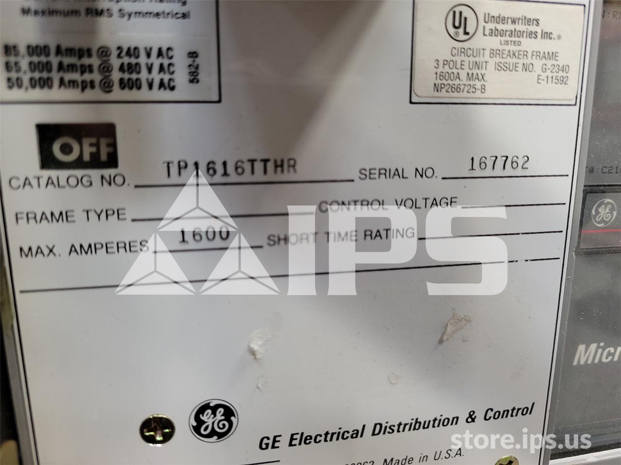 1600A GE TP POWER BREAK MO/BI (TP1616) MVT PM LSHG, 1600A CT, 1200A RP