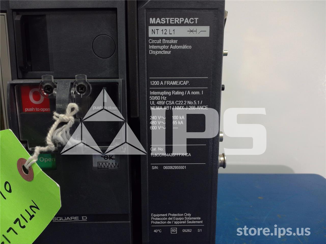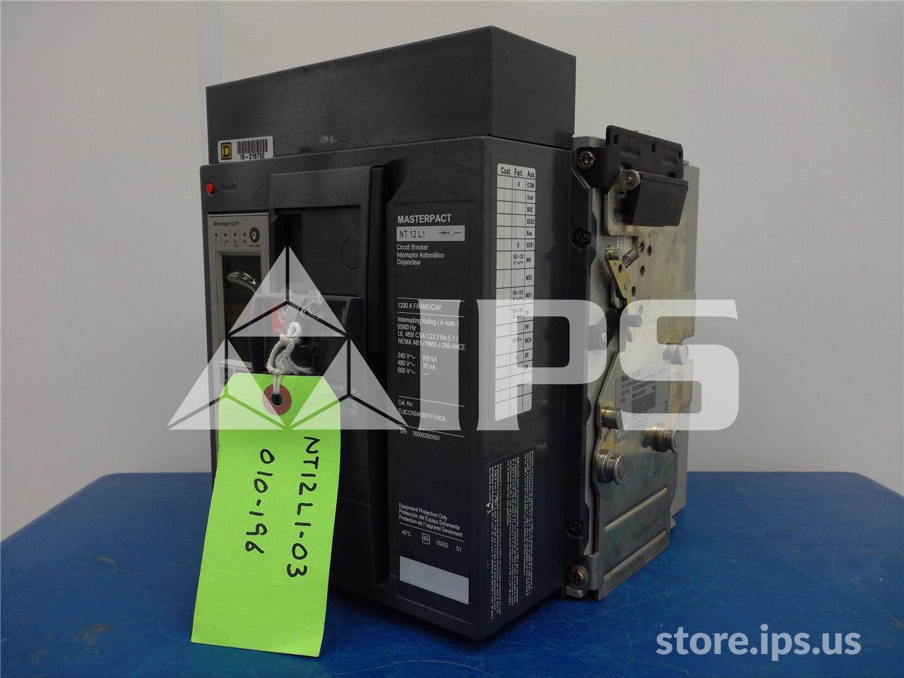 1200A SQD MASTERPACT NT12 L1 EO/DO TL8CCR64A3SFFFXHCA UNUSED SURPLUS 120VAC CONTROL, MICROLOGIC 6.0P LSIG, 1200A AMPACITY, 120VAC UV TD