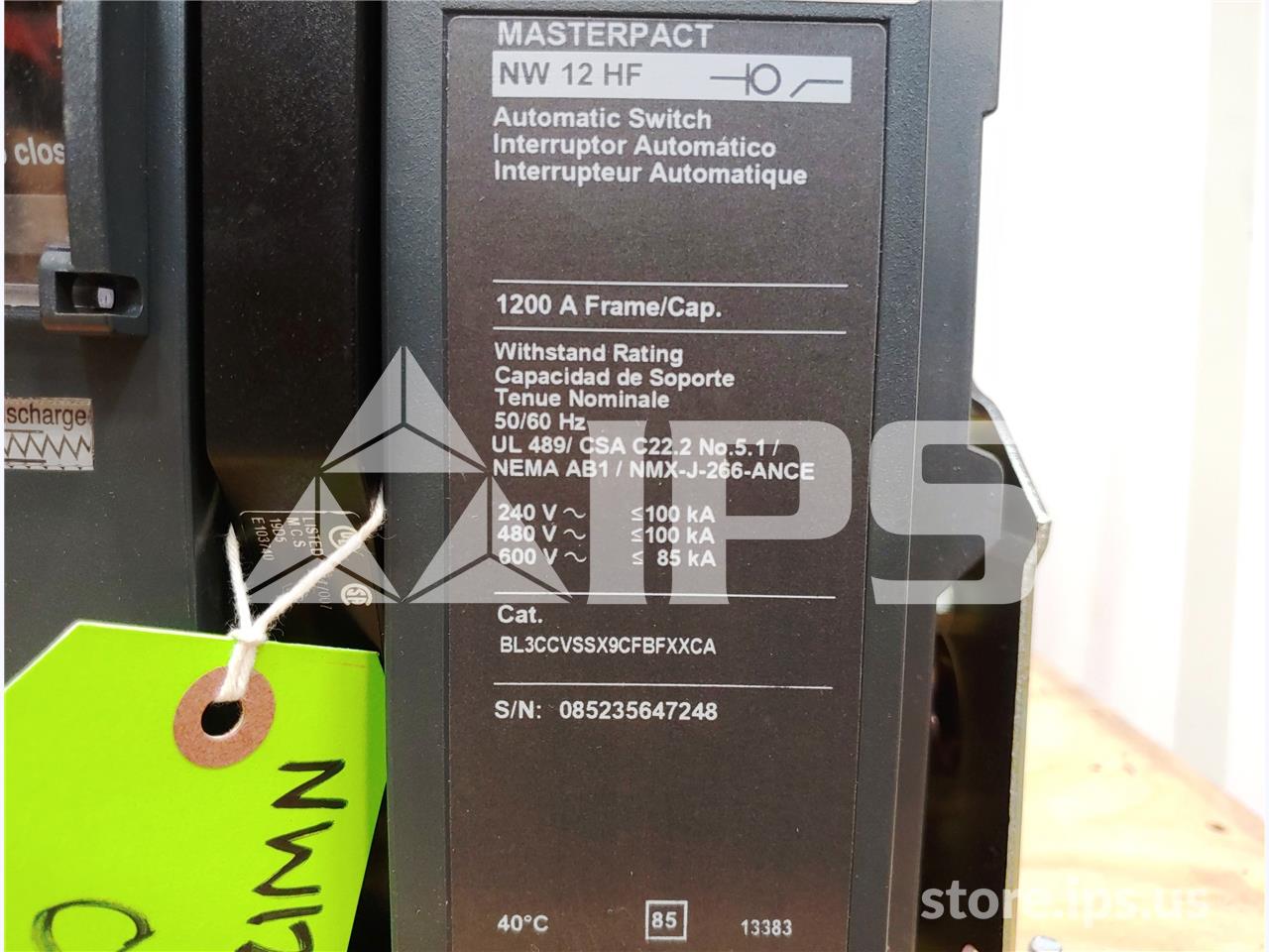1200A SQD MASTERPACT NW12 HF EO/BI BL3CCVSSX9CFBFXXCA UNUSED SURPLUS 120VAC CONTROL, 24VDC TRIP, AUTOMATIC SWITCH INSTANTANEOUS, 1200A AMPACITY