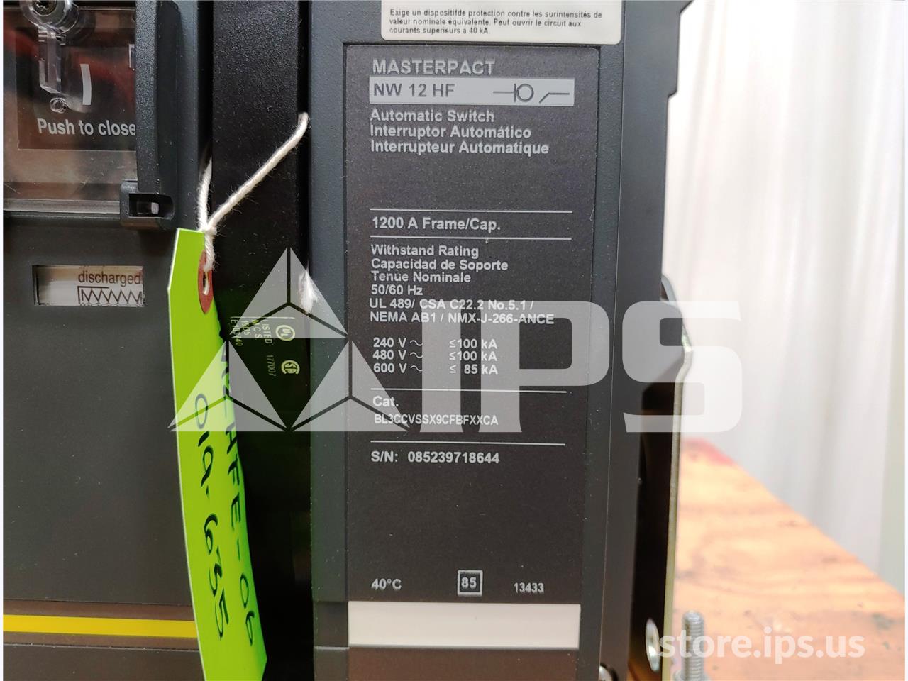 1200A SQD MASTERPACT NW12 HF EO/BI BL3CCVSSX9CFBFXXCA UNUSED SURPLUS 120VAC CONTROL, 24VDC TRIP, AUTOMATIC SWITCH INSTANTANEOUS, 1200A AMPACITY