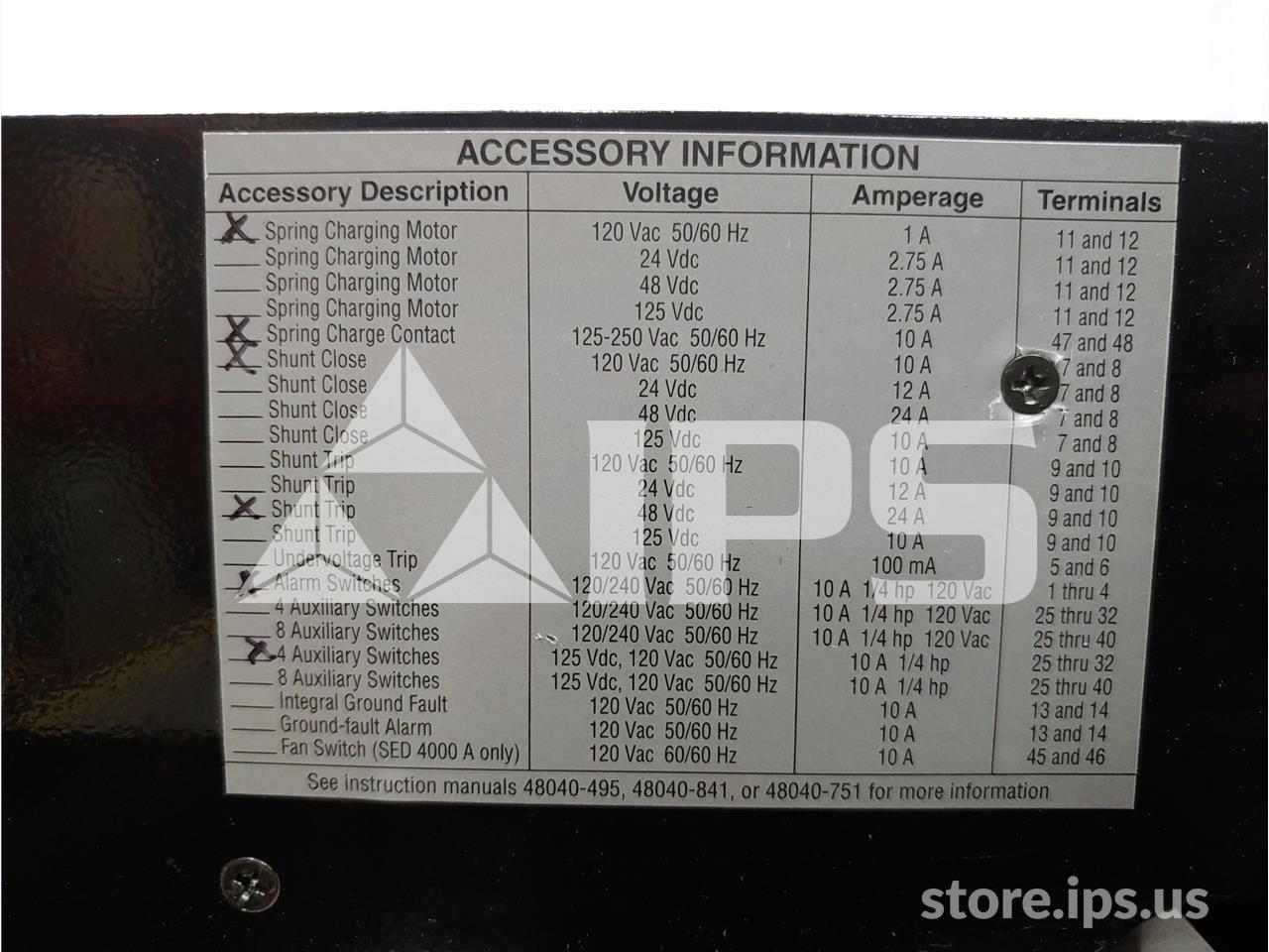 2500A SQD SEF362500LIES6D4 EO/BI (SEF362500) 120VAC CONTROL, 48VDC TRIP, MICROLOGIC SERIES B LI, 2500A CT, ARP100