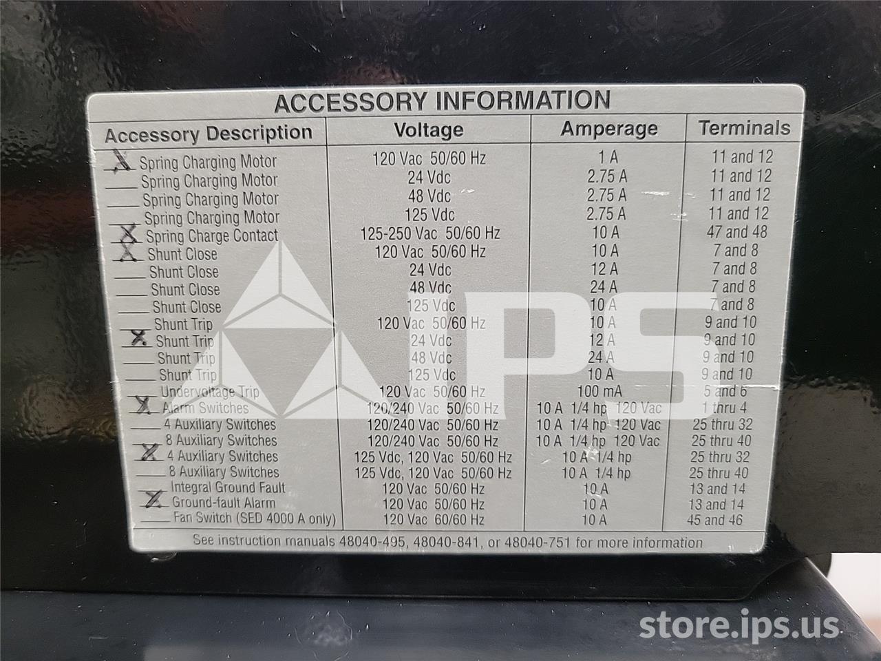 3000A SQD SED363000LIAES5D4 EO/DO (SED363000) 120VAC CONTROL, 24VDC SHUNT TRIP, MICROLOGIC SERIES B LIA, 3000A CT, ARP100 RP