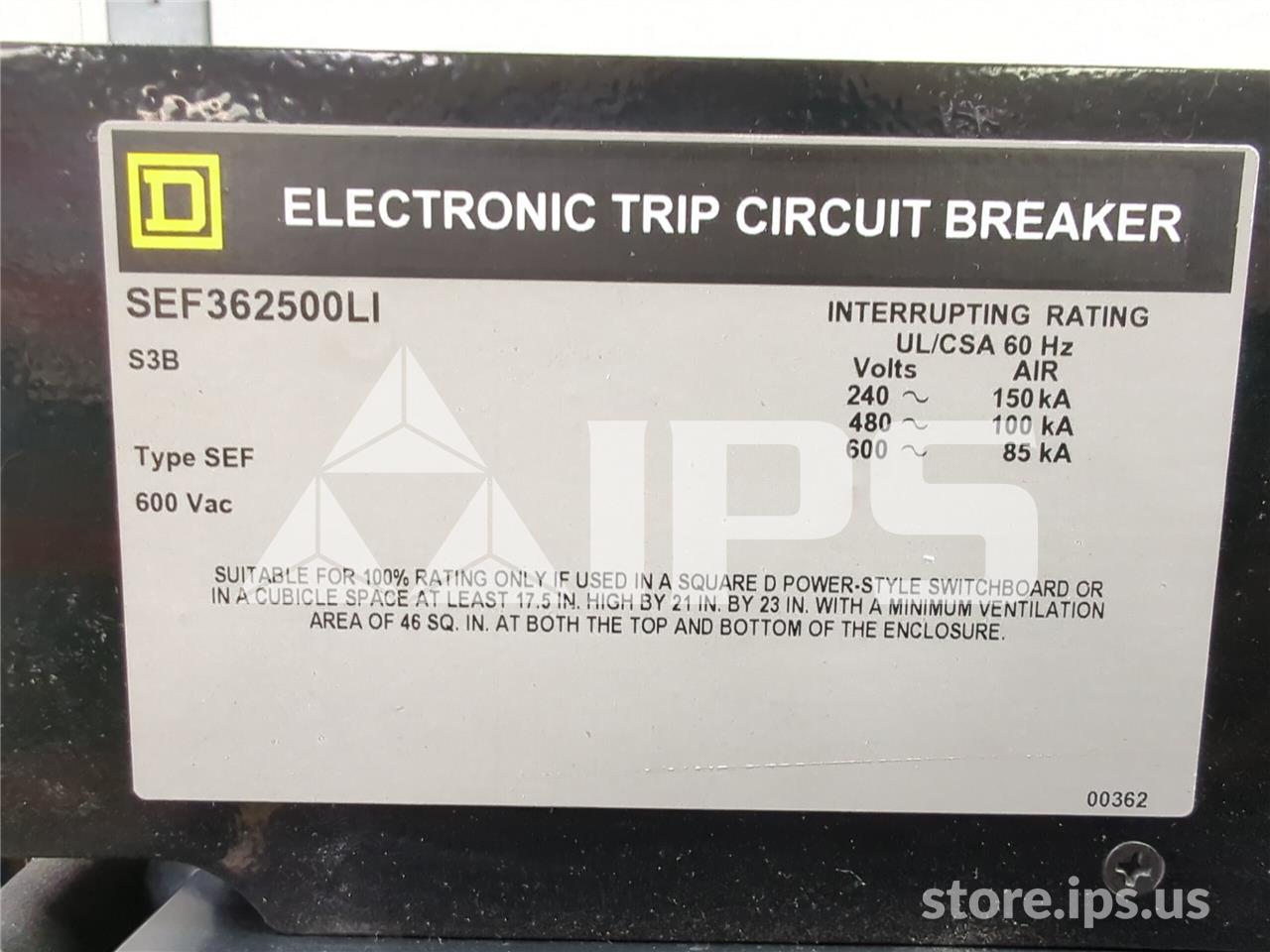 2500A SQD SEF362500LI MO/BI (SEF362500) MICROLOGIC SERIES B LI, 2500A CT, ARP100