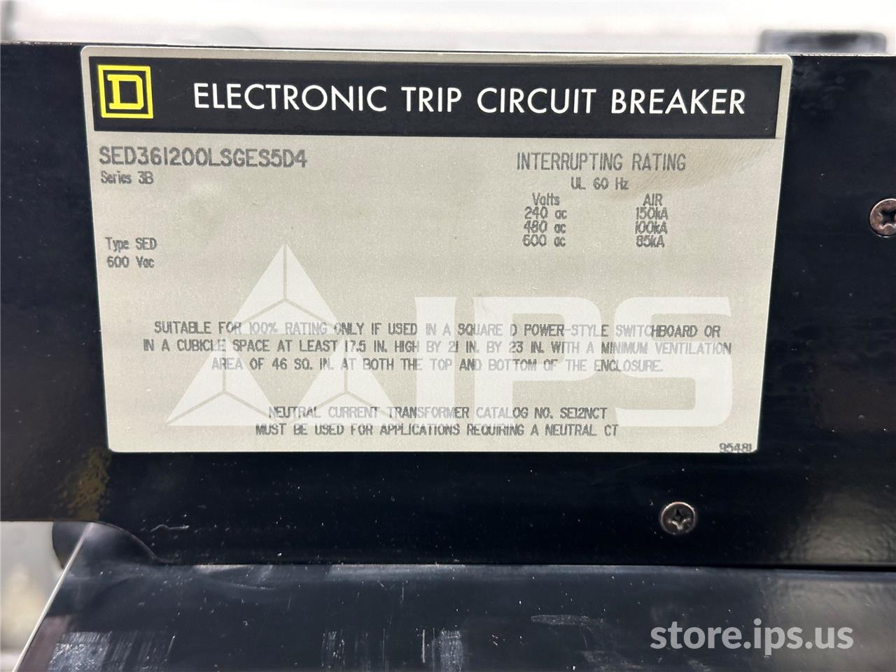 1200A SQD SED361200LSGES5D4 EO/DO (SED361200) 120VAC CONTROL, 24VDC SHUNT TRIP, MICROLOGIC SERIES B LSIG, 1200A CT, ARP100, BELL ALARM