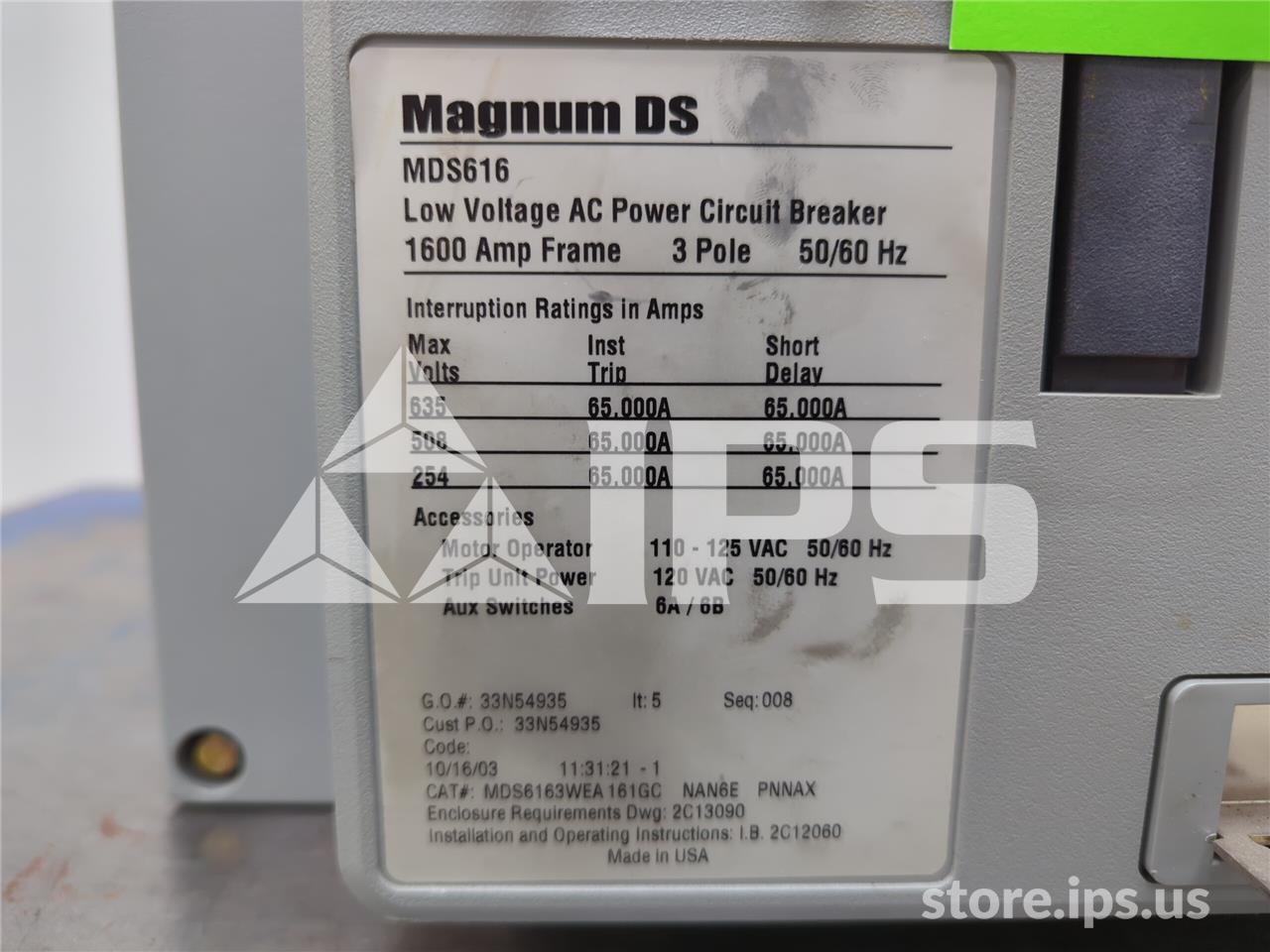 1600A CH MDS6163WEA161GCNAN6EPNNAX EO/DO (MDS616) 120VAC CONTROL, 24VDC SHUNT TRIP, DIGITRIP 1150 PLUS LSI, 1600A CT, 1600A RP