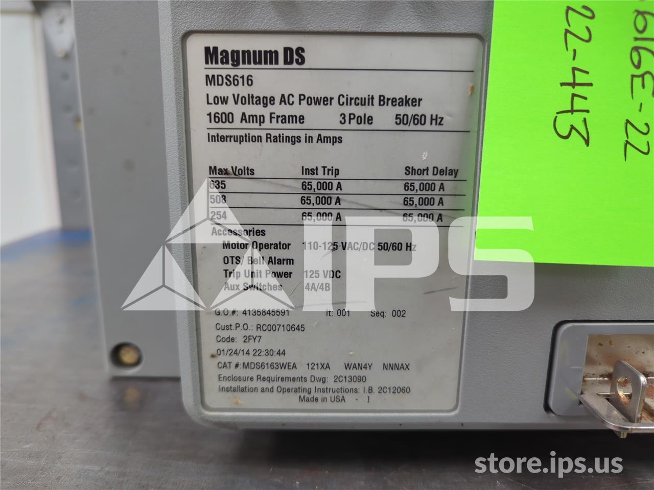 1600A CH MDS6163WEA121XAWAN4YNNNAX EO/DO (MDS616) 120VAC CONTROL, DIGITRIP 1150 PLUS LSIG, 1200A CT, 1200A RP, BELL ALARM