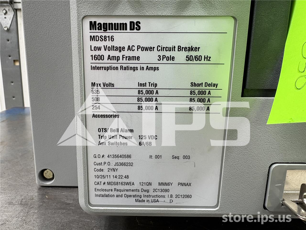 1600A CH MDS8163WEA121QNMNN6YPNNAX MO/DO (MDS816) DIGITRIP 1150 PLUS LSI, 1200A CT, 1200A RP, BELL ALARM