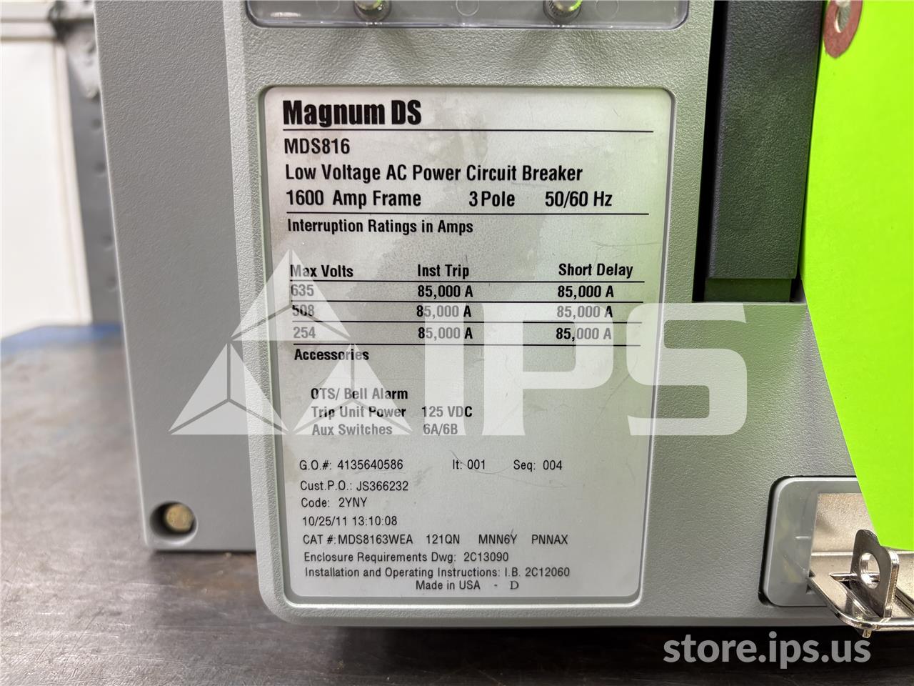 1600A CH MDS8163WEA121QNMNN6YPNNAX MO/DO (MDS816) DIGITRIP 1150 PLUS LSI, 1200A CT, 1200A RP, BELL ALARM