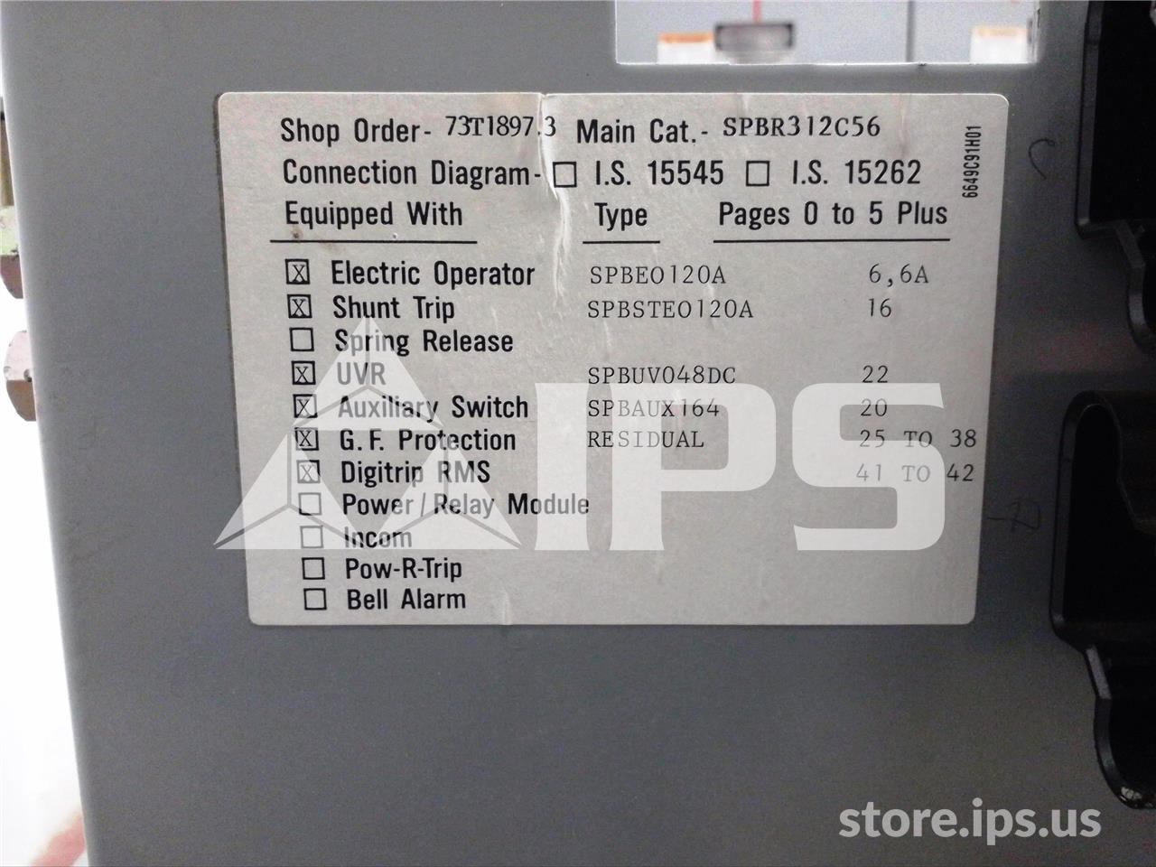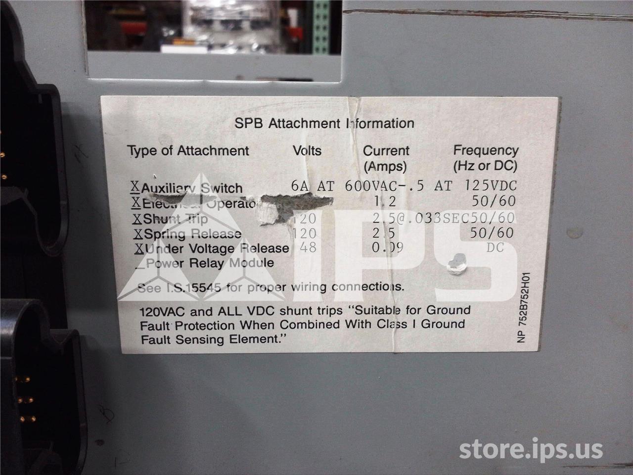 1200A WH SPB-100 EO/DO (SPB100) 120VAC CONTROL, DIGITRIP RMS 500 LSI, 1200A RP, 1000A CT, 48VDC UV