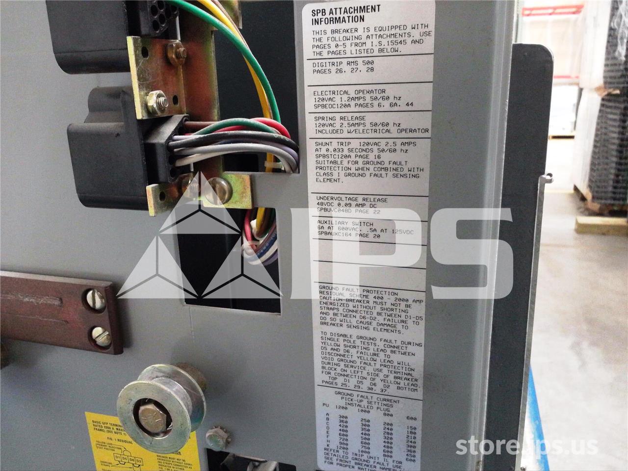 1200A WH SPB-100 EO/DO (SPB100) 120VAC CONTROL, DIGITRIP RMS 500 LSIG, 1200A RP, 1000A CT