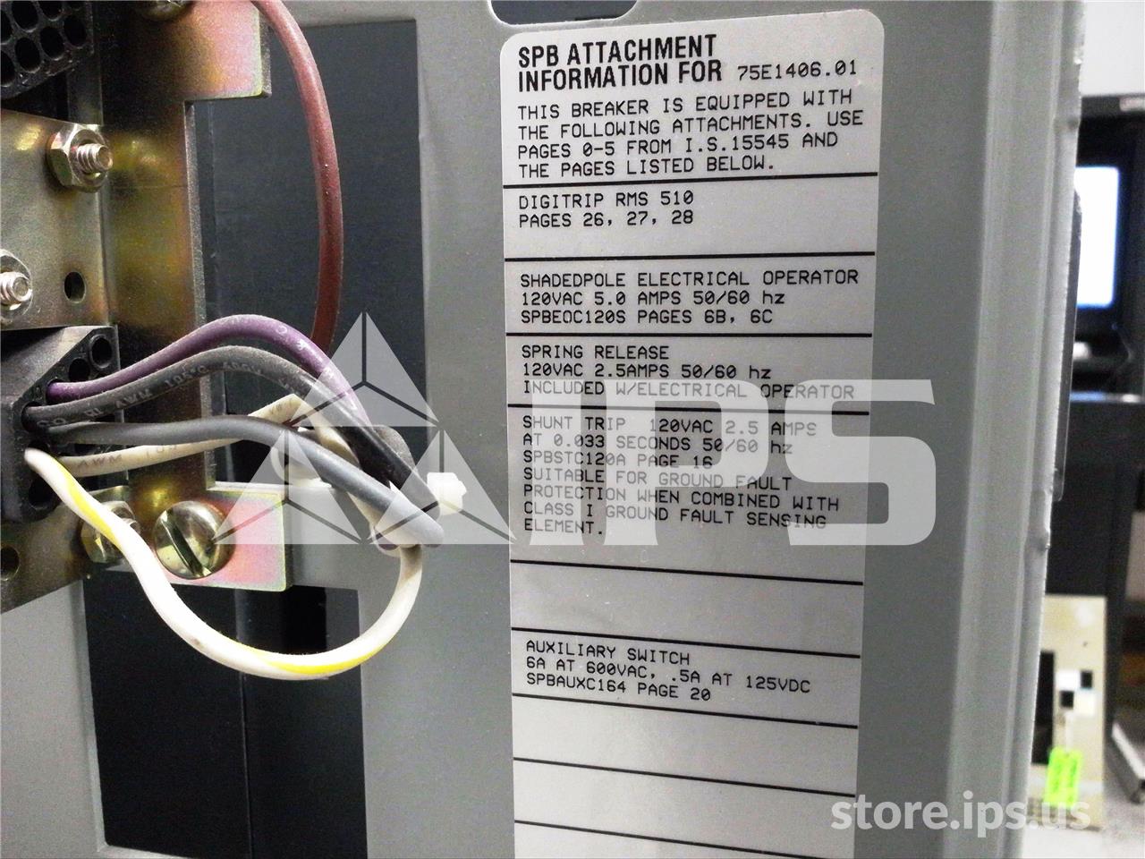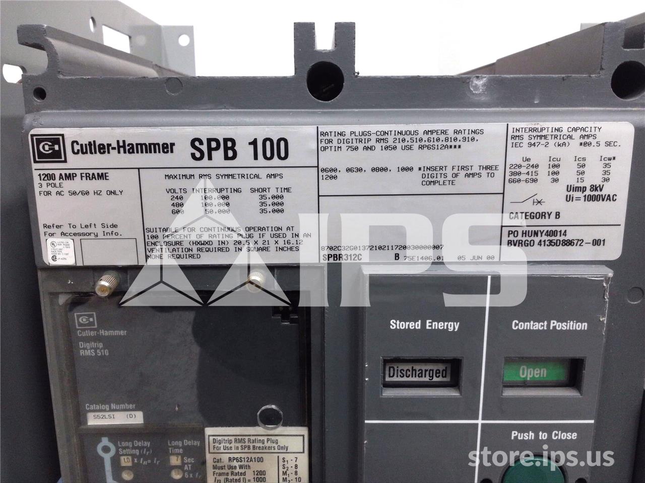 1200A WH SPB-100 EO/DO (SPB100) 120VAC CONTROL, DIGITRIP RMS 510 LSI, 1200A RP, 1000A CT